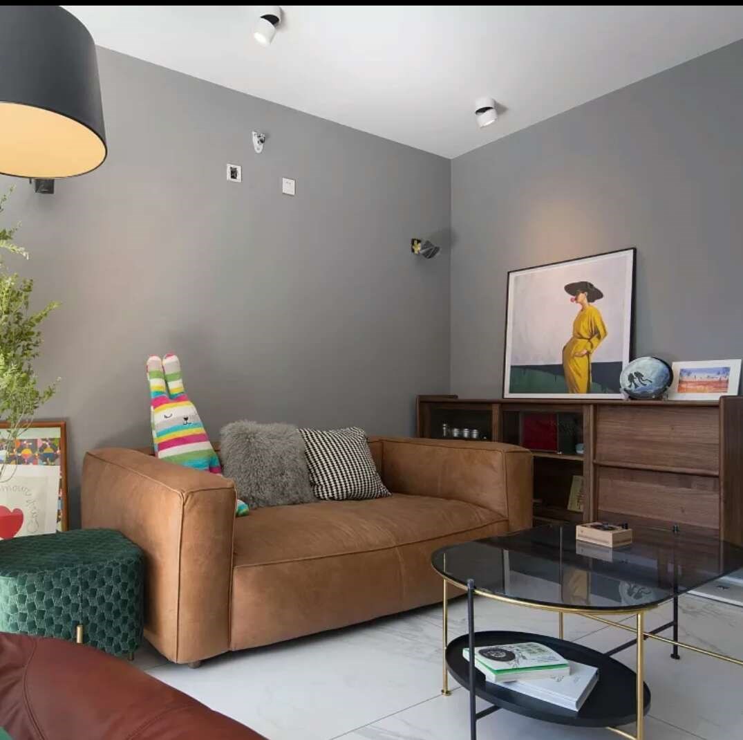 客厅的背景做成了灰色,灰色在这样的空间里更容易衬托出家具的质感