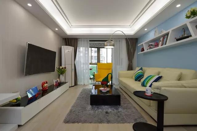 客厅用了黄色椅子和彩色抱枕装饰,鲜明的色彩提升了客厅的活力,充满着朝气。