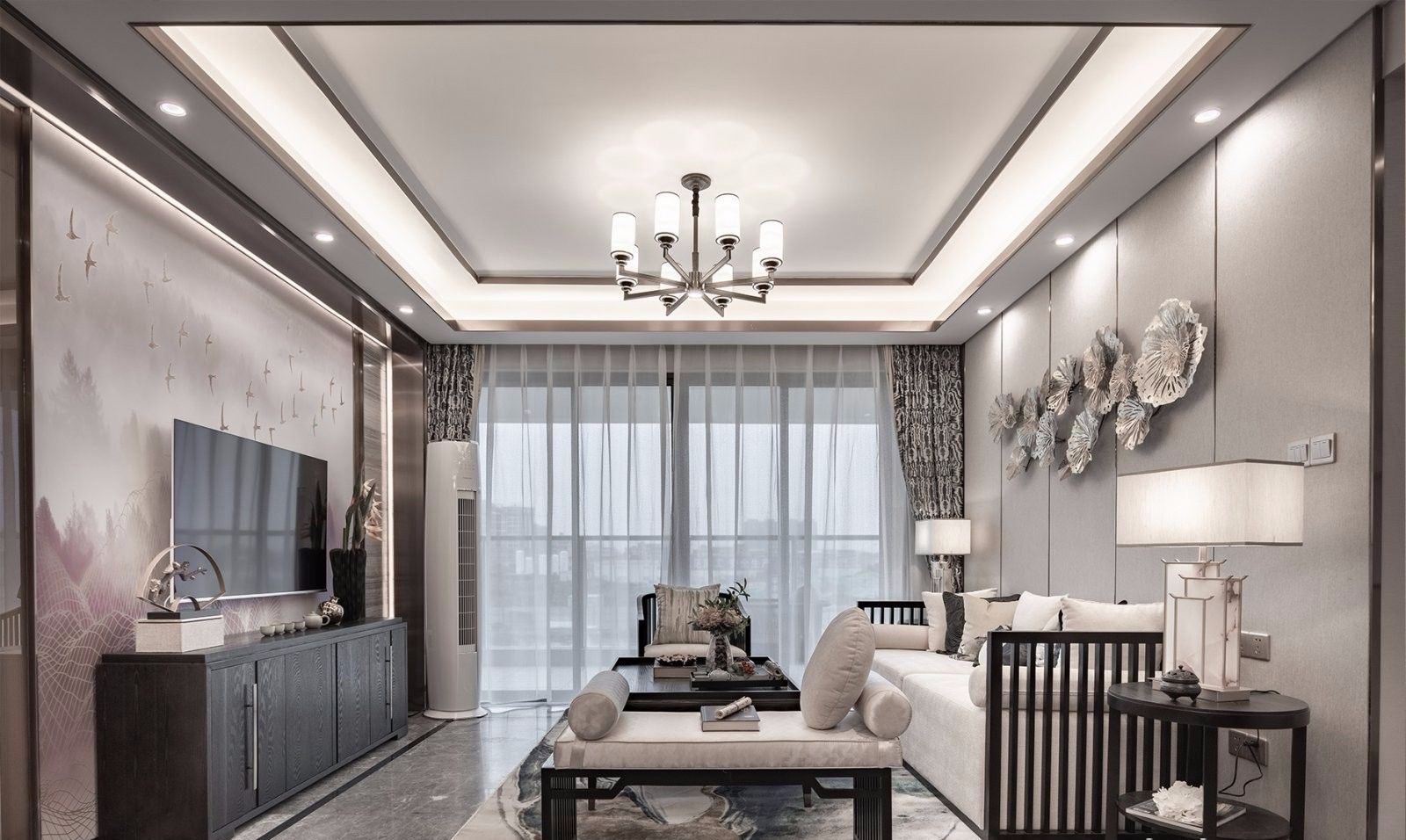 客厅空间,实木丝质软包座椅,形式讲究的餐具、挂画、花艺放置,在精雕细琢的细节里传达于环境,丰富居者的视觉感受。