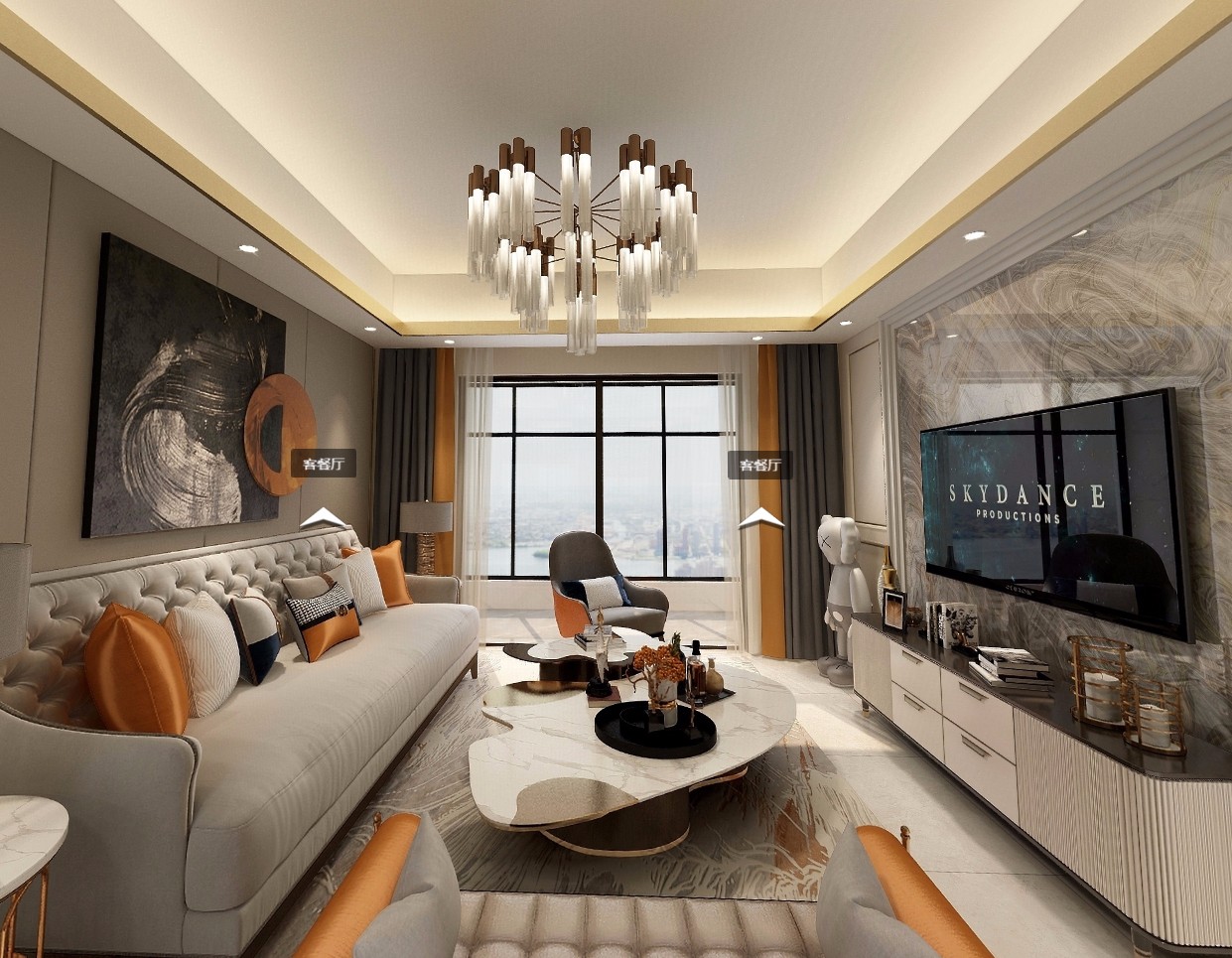 现代轻奢风客厅全景效果图