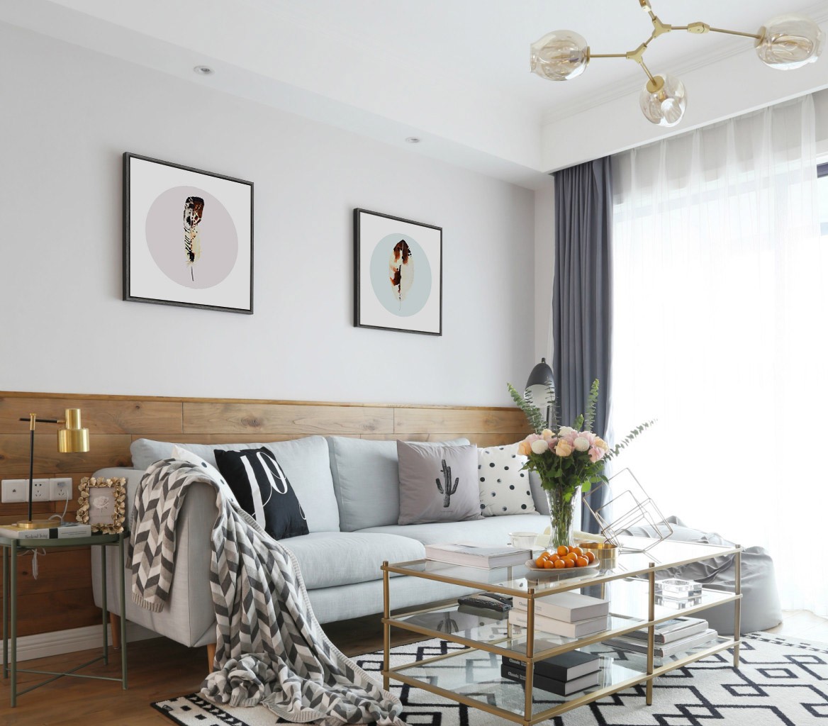 没有做过多造型,而是利用独特又有简约的挂画,营造轻松舒适的北欧风情