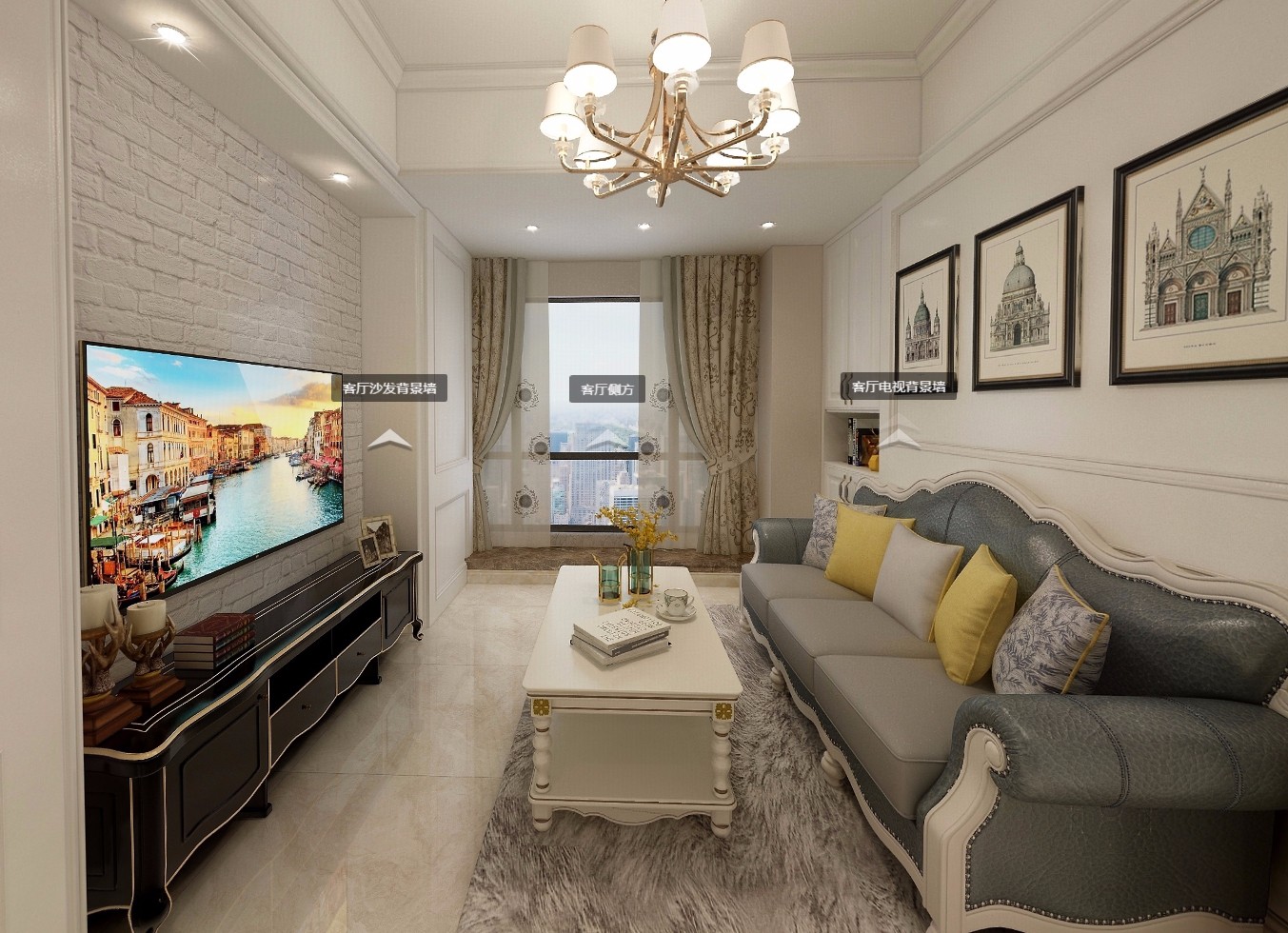 120㎡现代风客厅全景效果图