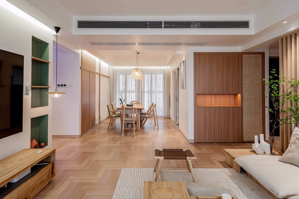 对客厅空间的氛围灯光进行了特别布局,让灯光氛围和身体感知,从而放松紧张的工作情绪, 与父母、孩子、爱人,在放松、优雅、温暖的空间度过一个愉快的周末