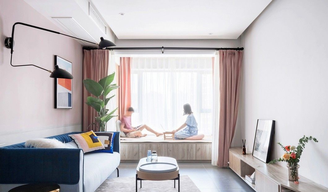 原始户型结构的客厅餐厅空间是狭长的,给人很大压迫感. 但是当整个空间被打通后,在视觉上增大了空间面积,60㎡巧变80㎡