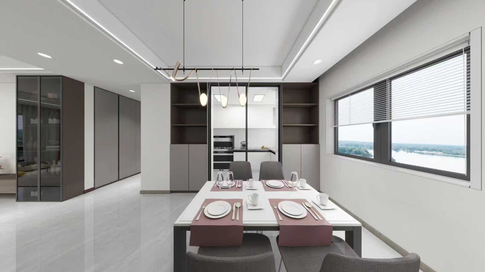 浅白与深棕碰撞,勾勒开阔用餐场域。吊灯如星子垂落,窗外湖景作伴,摆好餐碟,把每一餐都过成与自然共赏的仪式 。