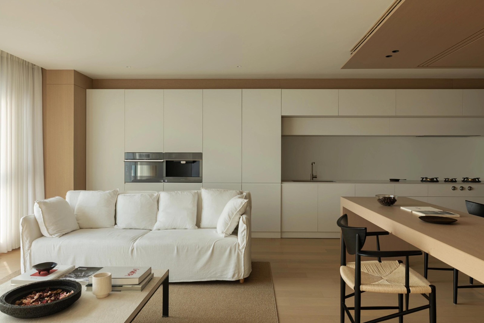 将靠近客厅的卧室纳入公区,扩大公区面积同时将公私区分隔。 空间内置入一个“盒子”,改变进入节奏并解决原户型没有玄关的痛点。把玄关看作是房屋的***区澉哨域,并增设储物间与家政间。