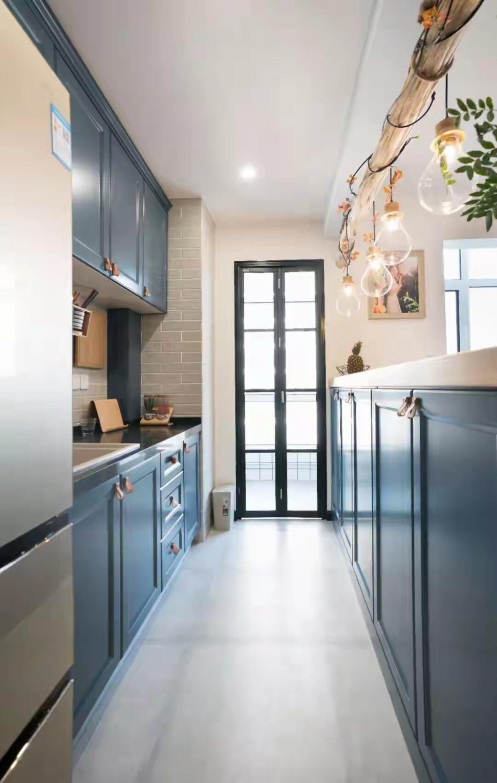 入户玄关走廊和餐厅之间做了一个半墙隔断,上方做造型,下方也留空部分来摆放绿植和加上藏光,玄关的侧方是摆放了换鞋凳,方便日常使用。 餐厅处的空间不算很宽敞,更多的面积留给了收纳,餐厅的背景墙上做了地图装饰,原木风的餐桌椅搭配绿植显得自然而又清新。 整个客餐厅的颜色是以白色与浅蓝色为主,地 面铺设浅灰色的地砖,再加上原木色的家具,给人一种清新、自然的感觉。